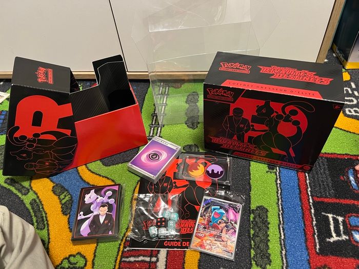 Idéal collectionneur ETB VIDE Rivalités destinés, contient : - carte promo -Dés 🎲 -Guide de jeu -Cartes énergie -Jeton - protège cartes En très bon état Vendu dans sa protection Etb souple Découvrez sur ma vitrine d’autres Etb vides #jonathandu67130