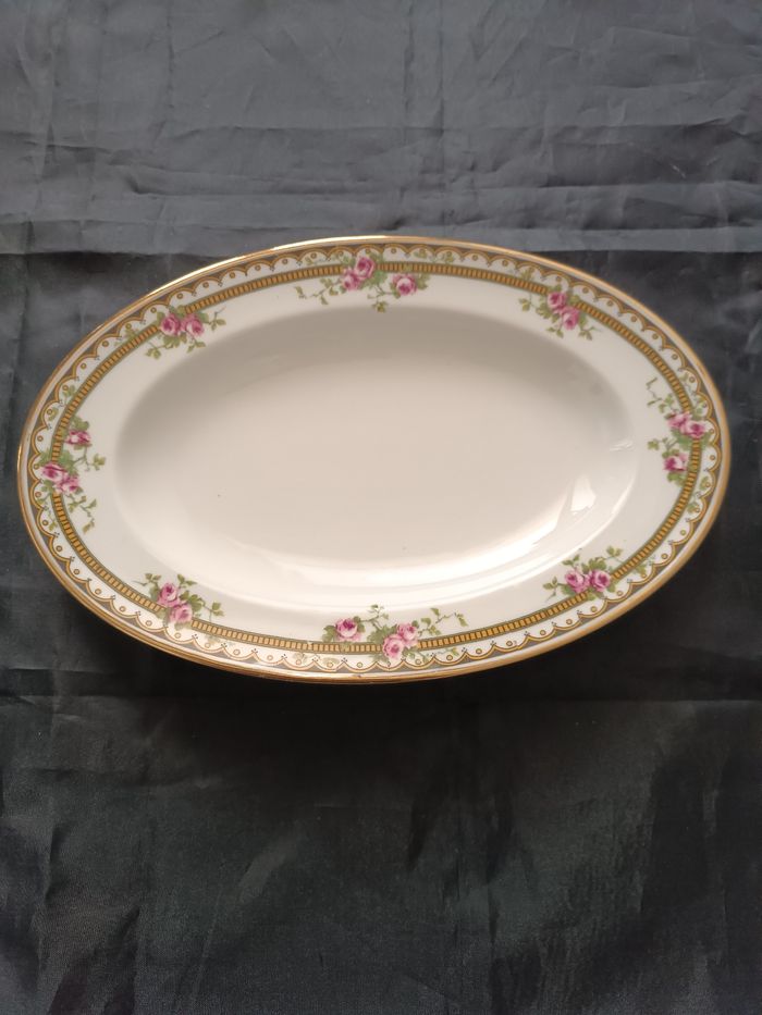 Plat oblong en porcelaine Jean Boyer Limoges France à décor floral et liseret doré 23,5 cm x 15 cm bon état cf photos