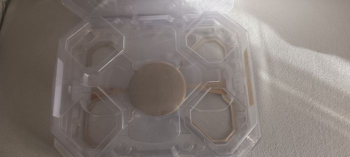 Arène pour toupies En très bon état Transparente avec 2 modes Un pour jouer à 2 ( 2 trous) Un autre pour jouer à 4 ( 4 trous) Il suffit de la retourner