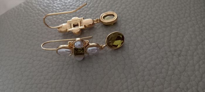 Boucles d'oreilles doré inoxydable cristal vert perle très peu porté état impeccable long 3,5cm