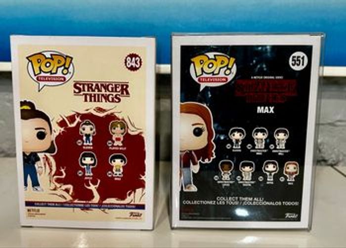 Pops Max et eleven de la série Stranger Things. Elle sont neuves, jamais sortie de sa boîte. La figurine max 551 a toujours son emballage de protection autour de la boîte, j'ai uniquement rajouté un scotch en bas de la protection car elle se décrochais. Boîte et figurine en excellent état. Jamais ouverte, jamais exposée hors boîte. Idéale pour collectionneur ou fan de la série ! Je vend également dans le lot, le livre stranger things « runaway max » de brenna yovanoff qui est en excellent état. N'hésite pas à me contacter si tu as des questions, ou des propositions de prix