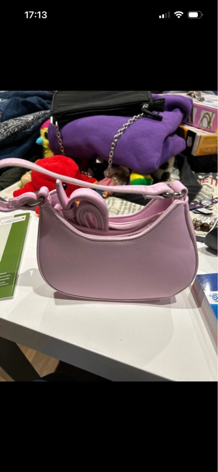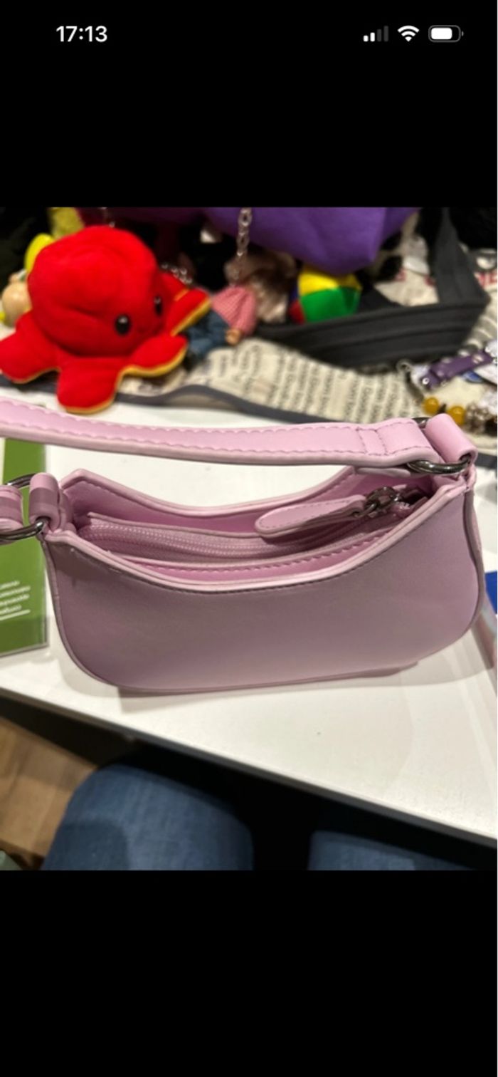 Petit sac à main lila, jamais utilisé. Possibilité de mettre la bandoulière plus grande.