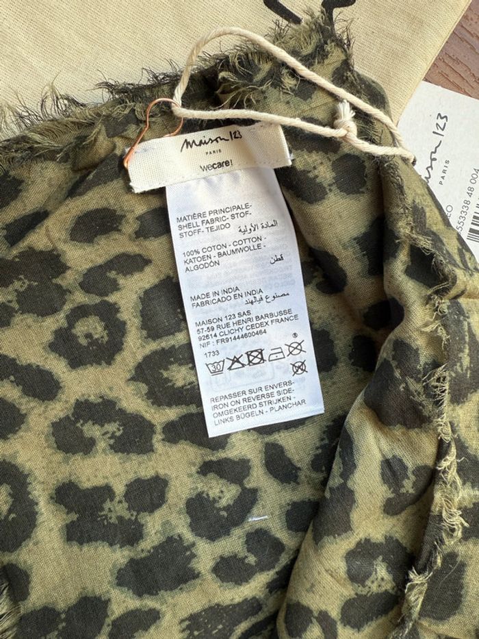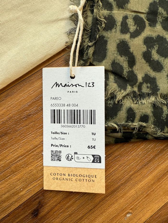 Paréo neuf Marque : Maison 123 Modèle : Dan Kaki motif léopard Taille unique En coton biologique Fourni avec sa pochette