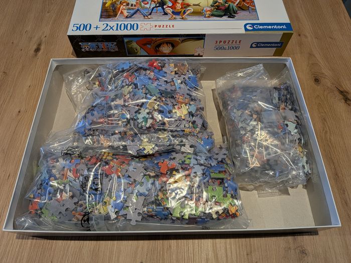 3 puzzles One Piece Clementoni 1 puzzle 500 pièces et 2 puzzles 1000 pièces Ils sont complets En excellent état car chacun a été fait qu'une seule fois Réduction activée sur les lots