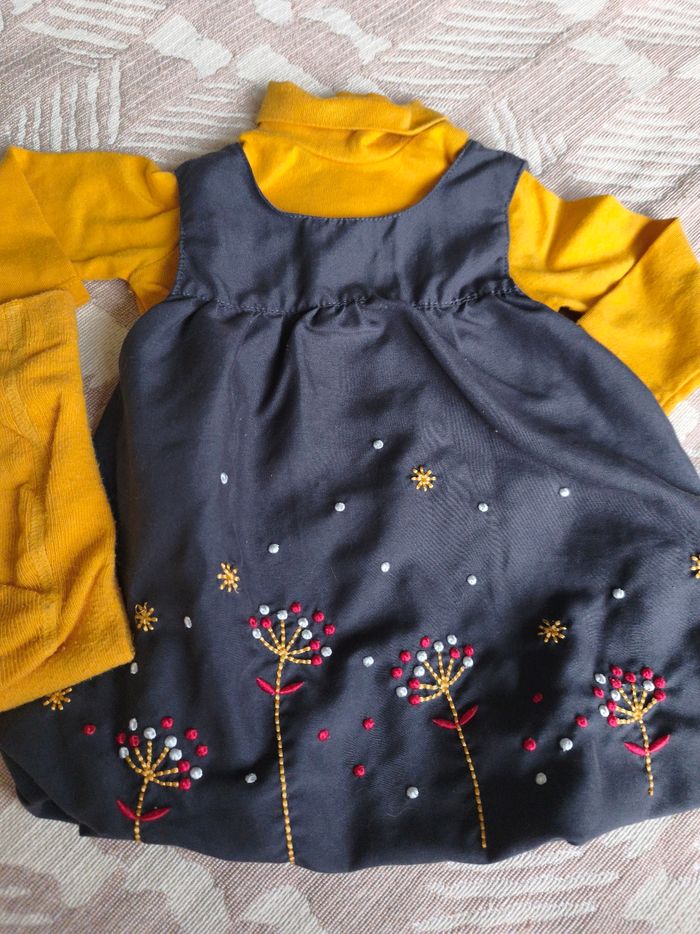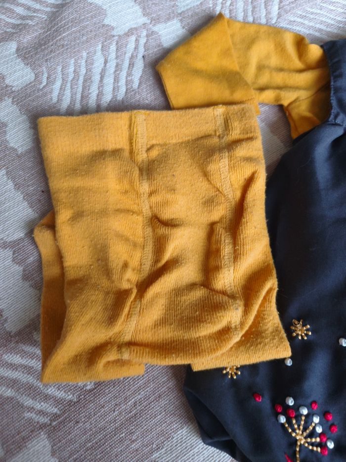 Ensemble 3 pièces robe sans manche col roulé et les collants de couleur moutarde taille 3 mois