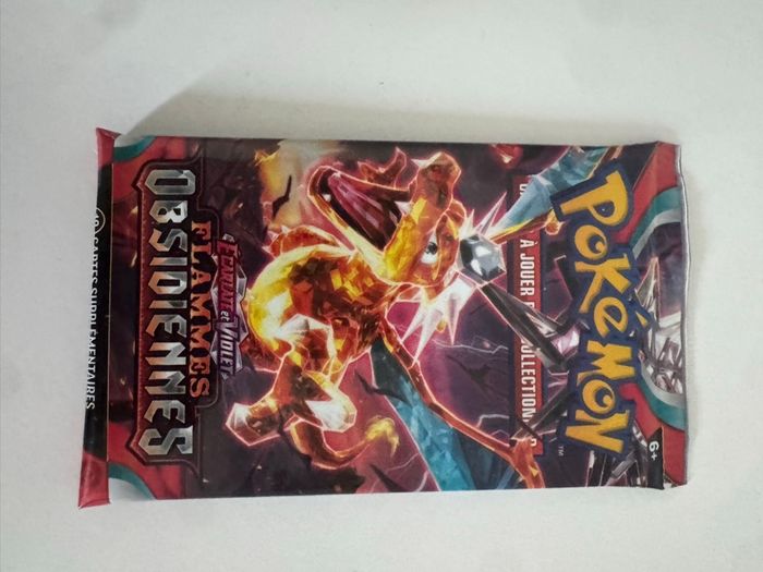 3 boosters Pokémon série EV3 – Flammes Obsidiennes. ✔️ Scellés ✔️ Non pesés ✔️ État impeccable Idéal pour ouverture ou collection.