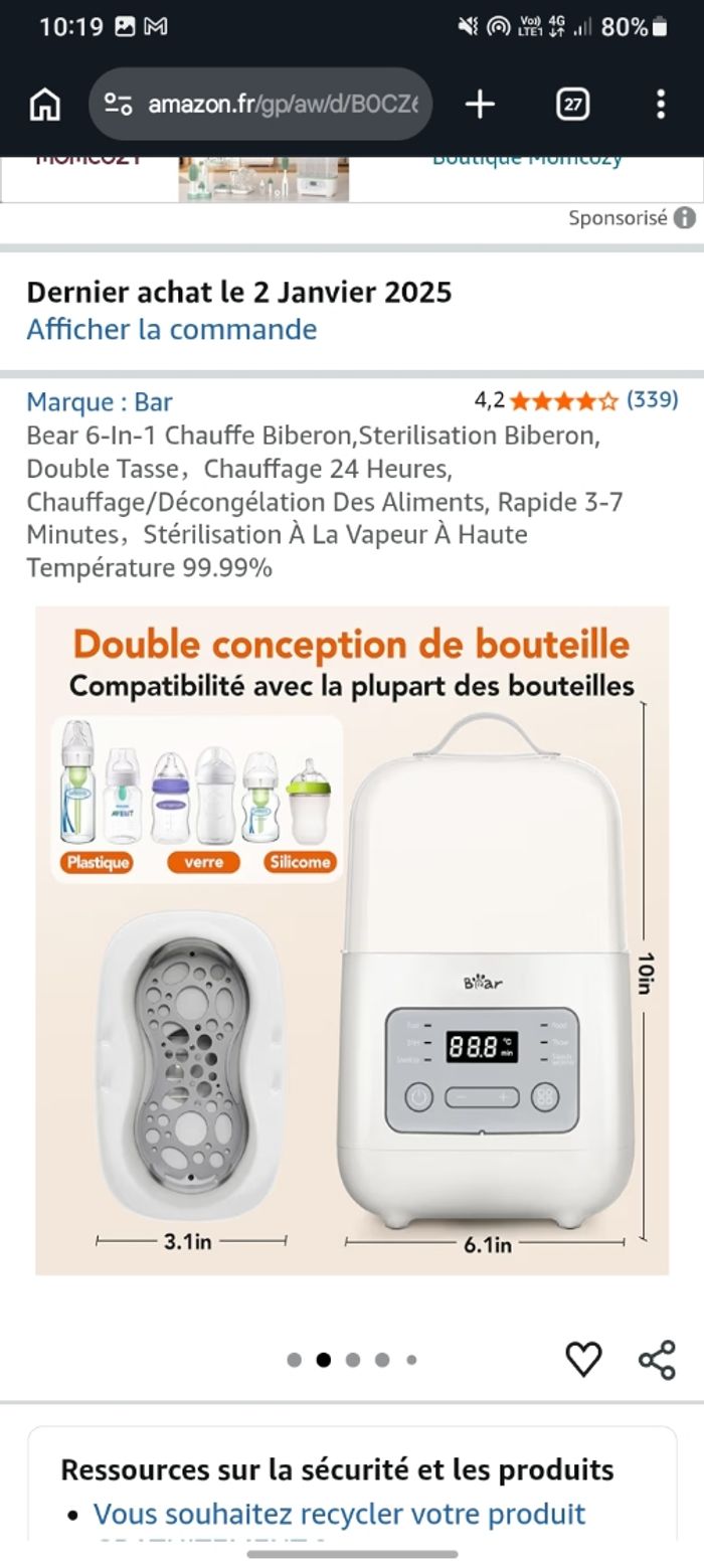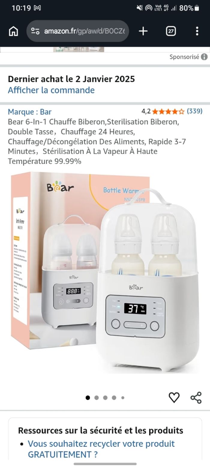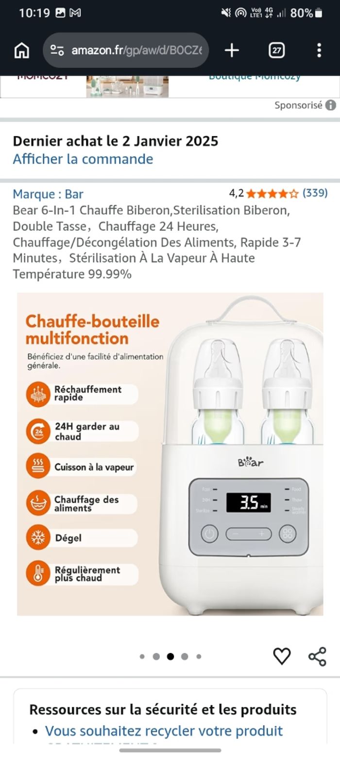 Je vends ce chauffe-biberon multifonction de la marque Bar. - Type de produit : Chauffe-biberon - Marque : Bar - Fonctionnalités : Réchauffement rapide, Maintien au chaud 24h, Cuisson à la vapeur, Chauffe des aliments, Dégel N'hésitez pas à me contacter pour plus d'informations. Utiliser une seul fois Mon fils n'aime pas quand c'est chauffer Acheter neuf 36 euros