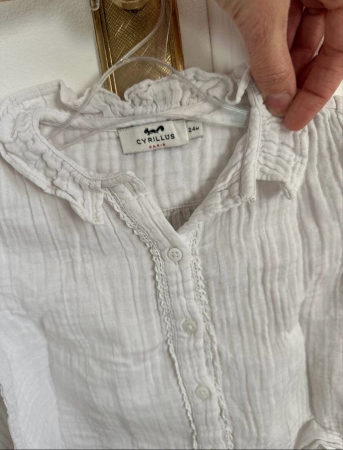 Chemisier blanc en gaz de coton Toute petite photo à l’arrière voir photo Taille 24 mois