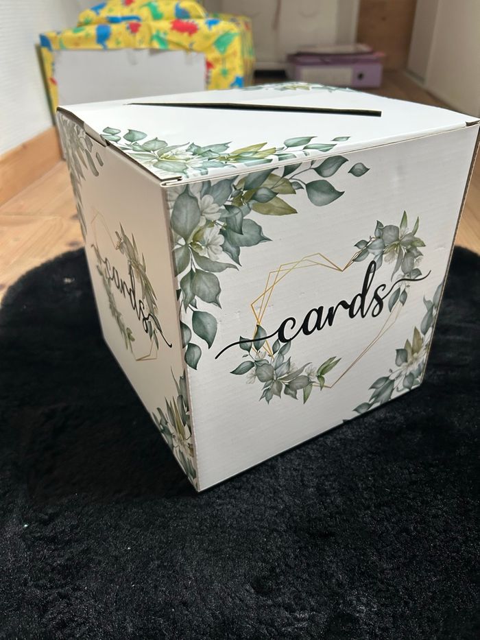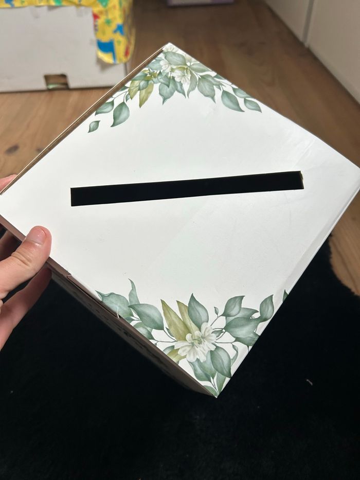 Cagnotte urne pliable pour baptême ou mariage Thème vert sauge 20x20, en carton et en parfait état 🙂