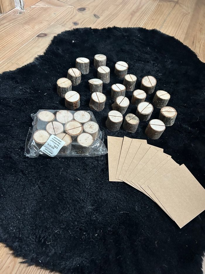 29 supports pour prénom façon tronc de bois avec carte en carton En très bon état 🙂
