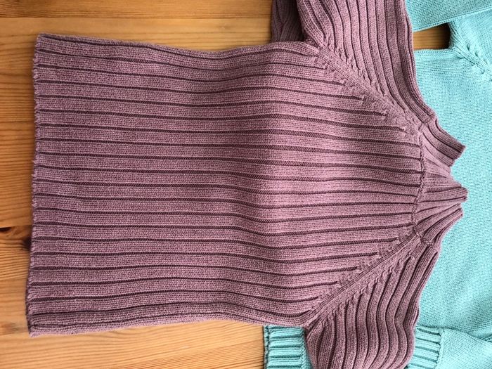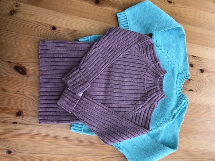 Lot de 2´pulls chaud Mauve col cheminée 50% coton 50% acrylique Turquoise col rond avec boutons pressions 100% coton Aucunes taches Aucuns trous