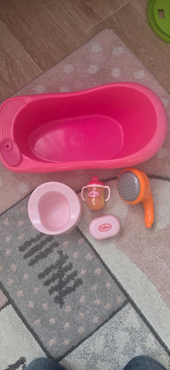 Vend cette baignoire+accessoires poupée en bonne état.voir les photos. Et de marque calinou