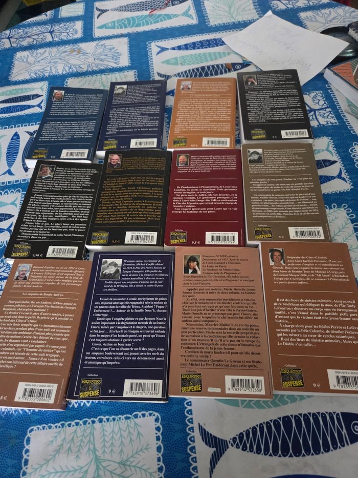 12 livres ça meurt sec a l'ocquirec. Oméga Bigoudene. Mortel hiver sur le Trieux. Îlot mortel à Tregastel. L oiseau noir de Plogonnec. Le raisin coulea Lesneven. Les santons de granités rose.vendredi noirsur L Arcouest. Jour maudits a l ileTudy. Mauvais sort dans le Tregor. Soirees noiresa Penmarc'h. Eau dormante en tregor je les vend en bloc