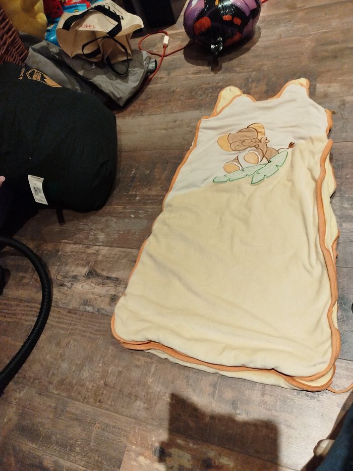 Gigoteuse jaune en très bon état, pas de trous , fermeture éclair Ok et boutons ok Idéal pour le printemps
