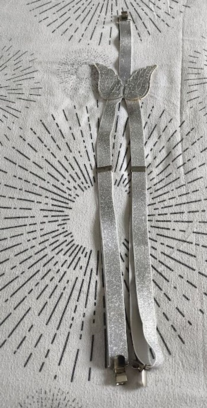 Lot de 3 paires de bretelles fille, 1 noire, 1 bleu marine, 1 argenté avec des ailes d'ange