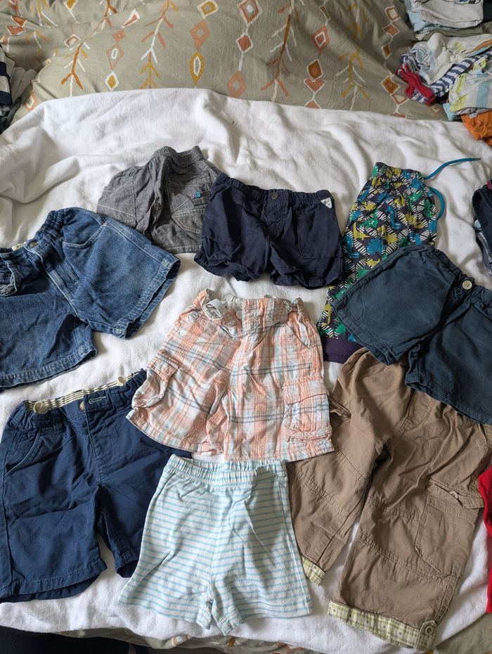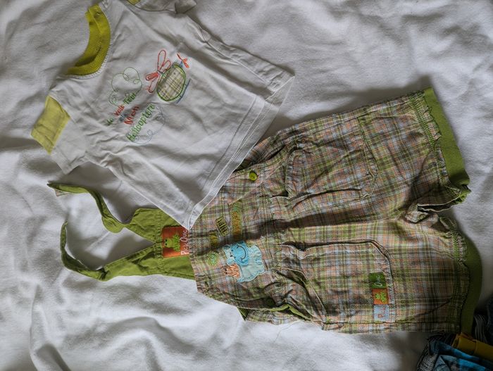 16 articles 2 pantalons leger 5 salopettes 7 shorts 2 tee shirts Très bon état Taille 18 mois
