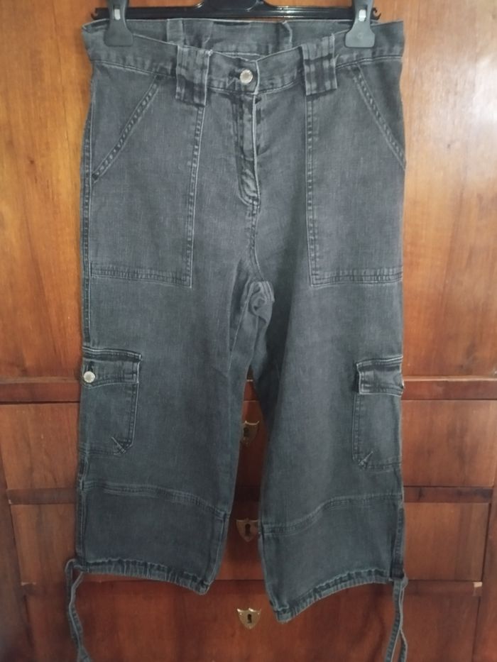 🩶 Pantacourt 🩶 Style : cargo 🩶 Couleur : noir délavé 🩶 Taille : 44 - - 2 XL 🩶 Composition : 98 % coton et 2 % élasthanne 🩶 Matière : jeans 🩶 Marque : Kiabi Casual