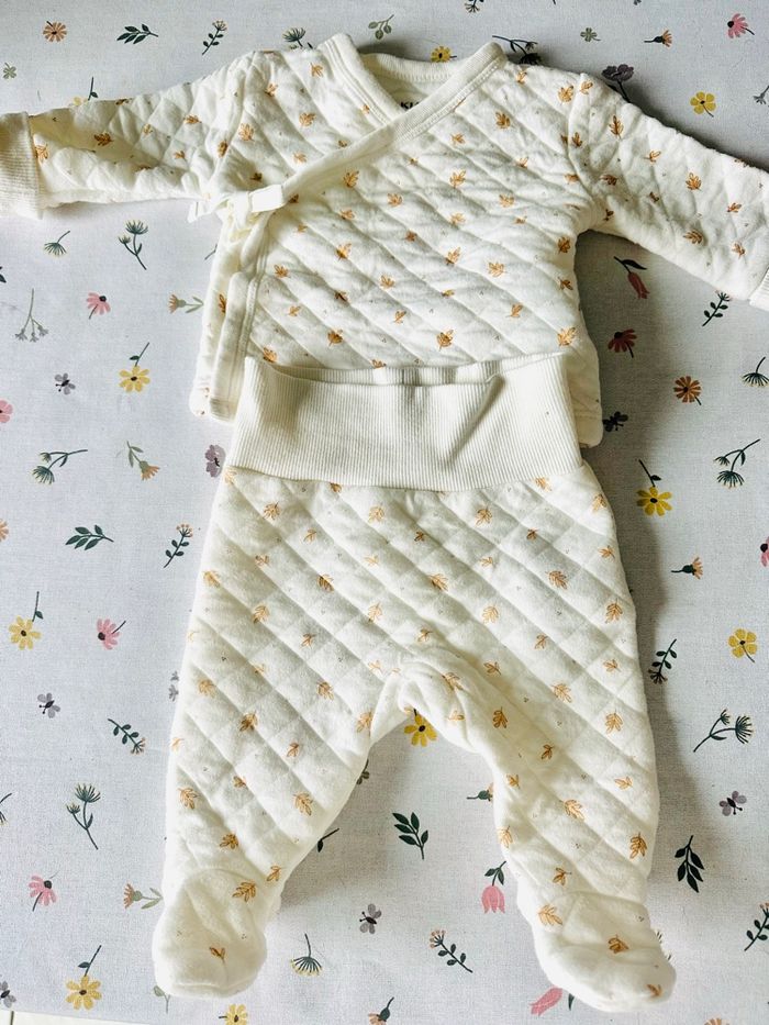 Ensemble deux pièces (haut et pantalon) de la marque Kiabi. Taille 1 mois. Peu servi. Très bon état
