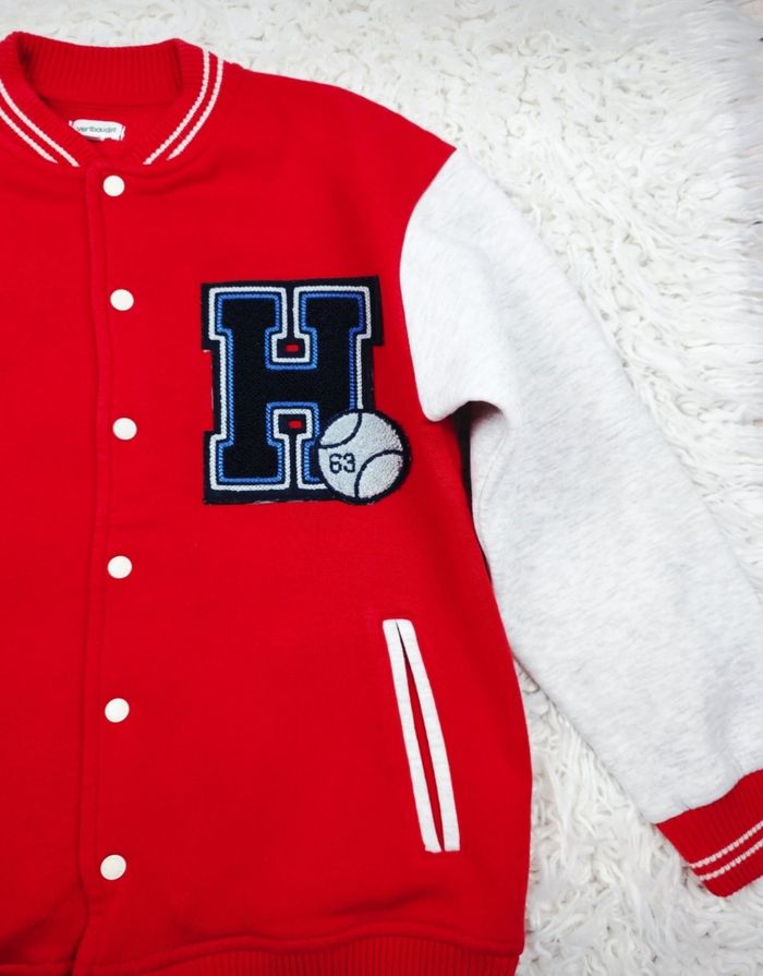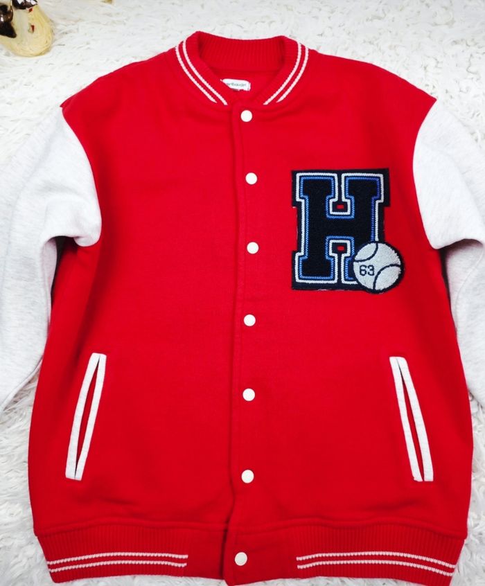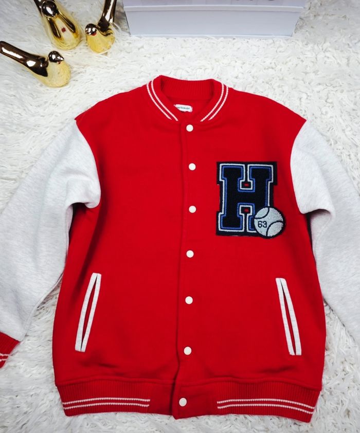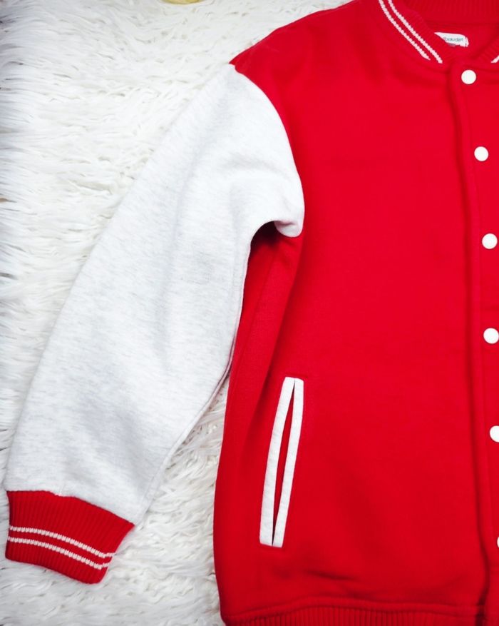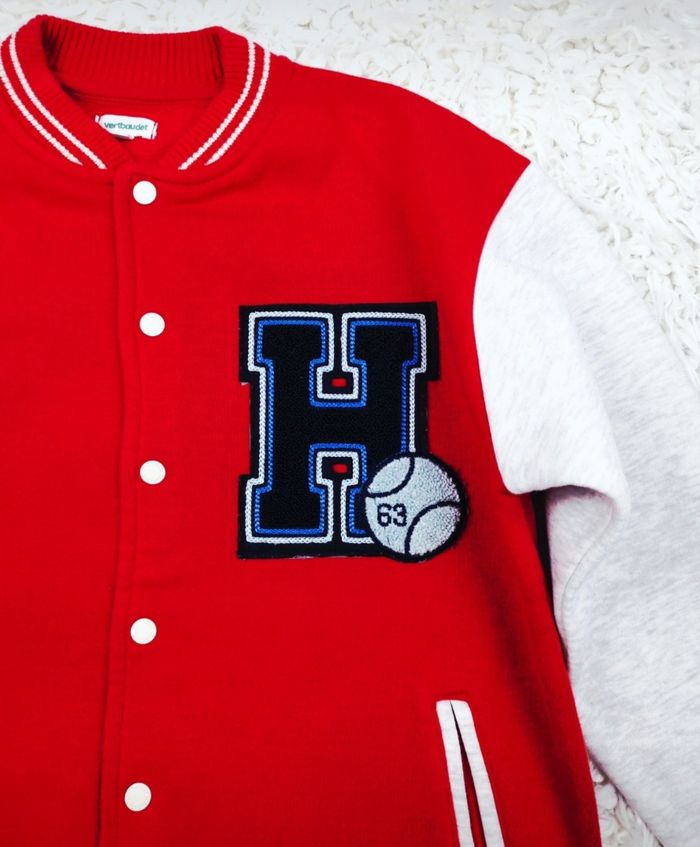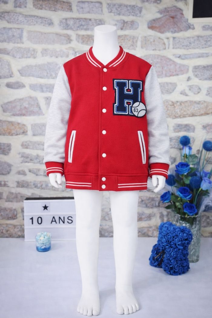 Teddy molletonné bicolore rouge et gris Garçon taille 10 ans marque Vertbaudet ✴️ Composition => 68 % coton 32 % polyester ✴️ Deux poches latérales ✴️ Fermeture par pression ✴️ Couleurs => Rouge et Gris ✴️ Grand écusson bleu marine brodé sur la poitrine ✴️ Bords cotés des poignets , du col et de la taille rayés