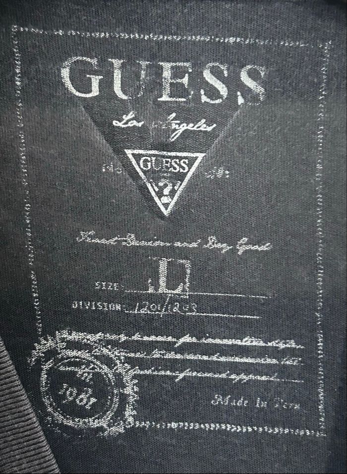 Je vends un t-shirt de la marque « Guess », taille L - Dimensions: Longueur 64 cm - Largeur 43 cm - Matière: 100% Coton Numéro de série: M01492-IOJ-099 - Couleur: Gris & Noir En très bon état 9,99€