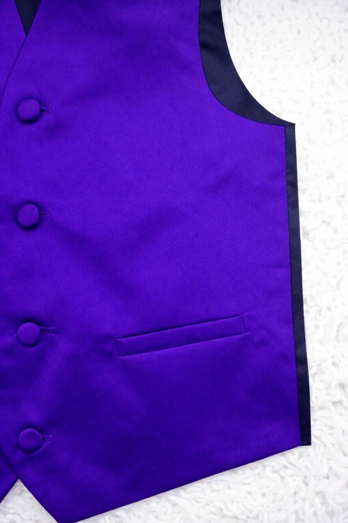 Ensemble gilet et noeud de papillon violet Garçon taille 10 ans marque Spartoo ✴️ Tissu satiné, soyeux et brillant ✴️ Fermeture par quatre boutons assortis ✴️ Deux fausses poches passepoilées sur les devants ✴️Nœud de papillon réglable ✴️ Composition => 100 % polyester