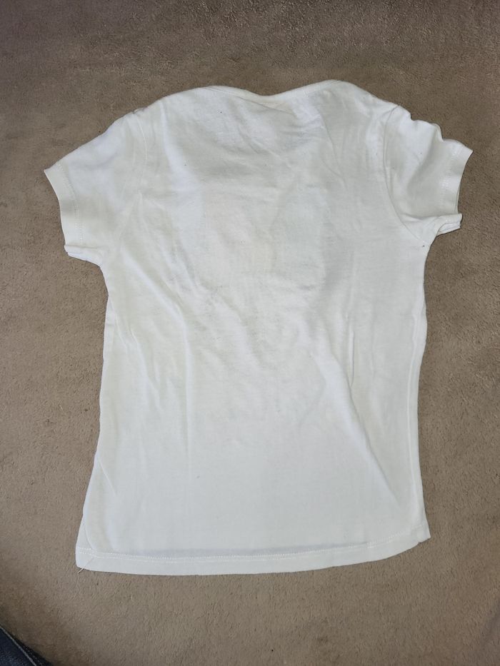 T-shirt manches courtes Disney blanc motifs minnie avec petites perles dans le noeud Attention noté 4 ans mais taille assez petit pour le passage de tête plutôt 2 - 3 ans Bien porté #virgy61fille24mois #virgy61fille3ans #virgy61fille4ans