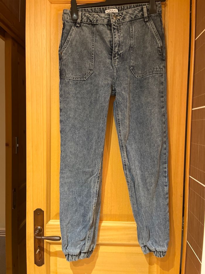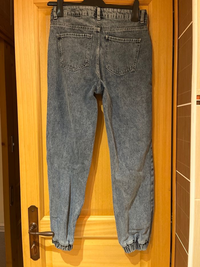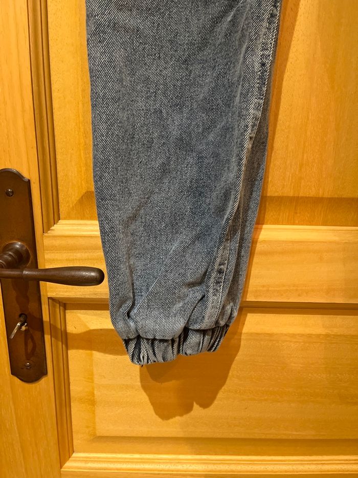 Jean jogger, taille haute, resserré aux chevilles. Jamais porté. Longueur de jambes 62cm.