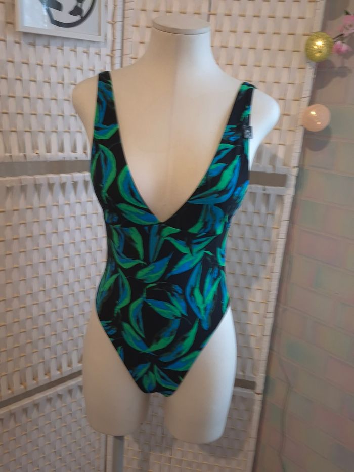 Joli maillot de bain 1 pièce Etam  imprimé tropical bleu/vert femme T36 Neuf - photo numéro 2