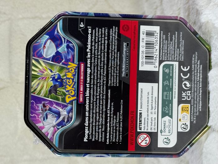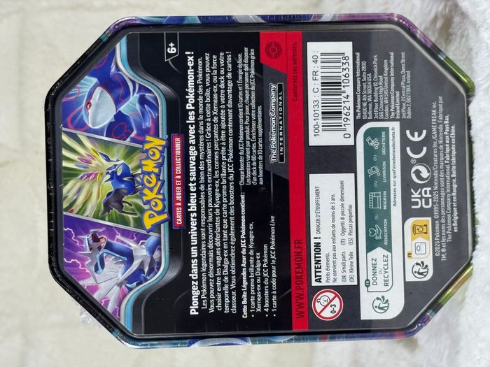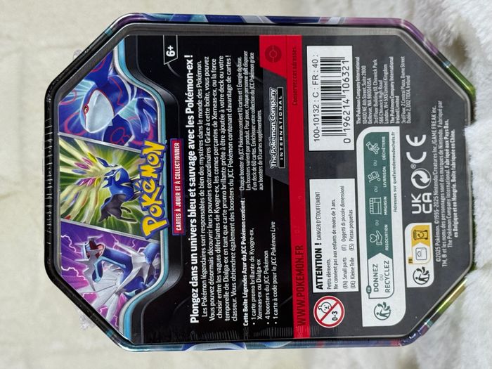 artset pokébox 2025 Kyogre EX Dialga EX ( Pokébex avec trou de scellage voir photos ) Xerneas EX Contenu d'une Pokébox : 2 Booster Étincelle Déferlante EV08 1 Booster Mascarade Crépusculaire EV06 1 Booster Faille Paradoxe EV04 envoi rapide et soigner