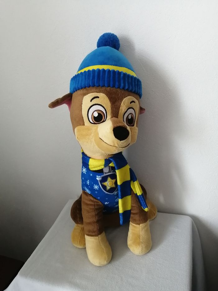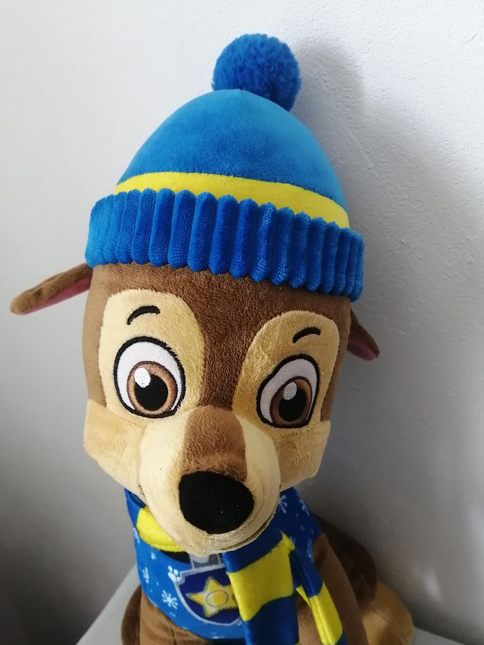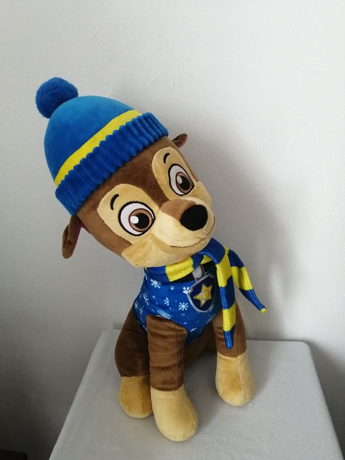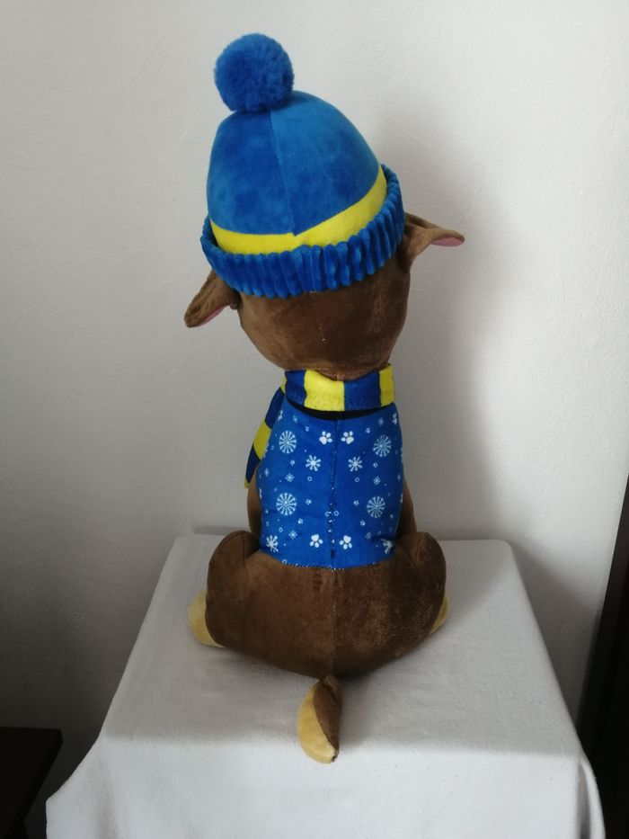 PAS D'ENVOI EN LOCKER POUR CET ARTICLE grande peluche chien chase avec bonnet et écharpe paw patrol pat patrouille nickelodeon 54 cm