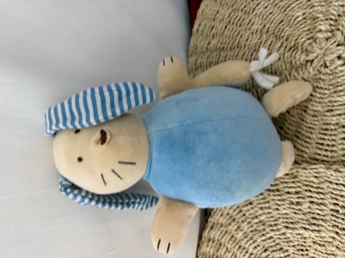 Doudou musical lapin bleu rayé JACADI - photo numéro 1