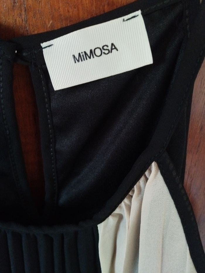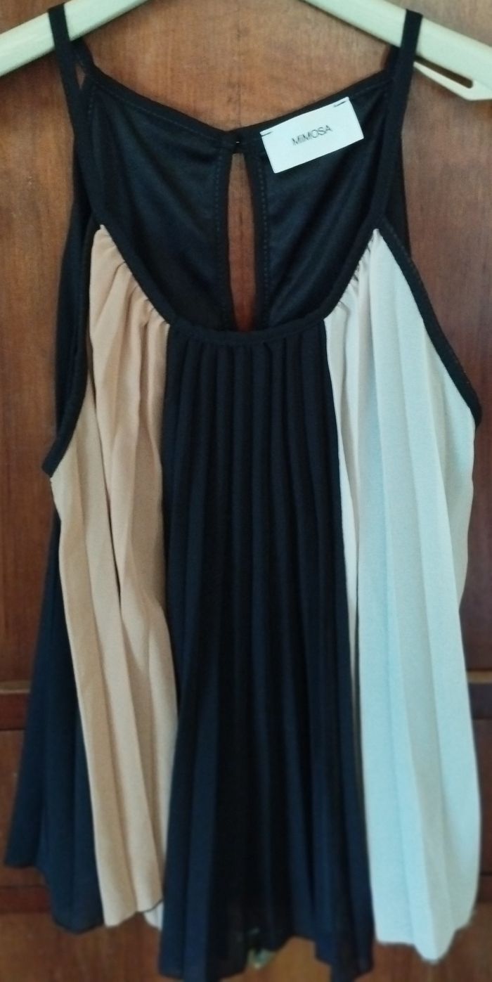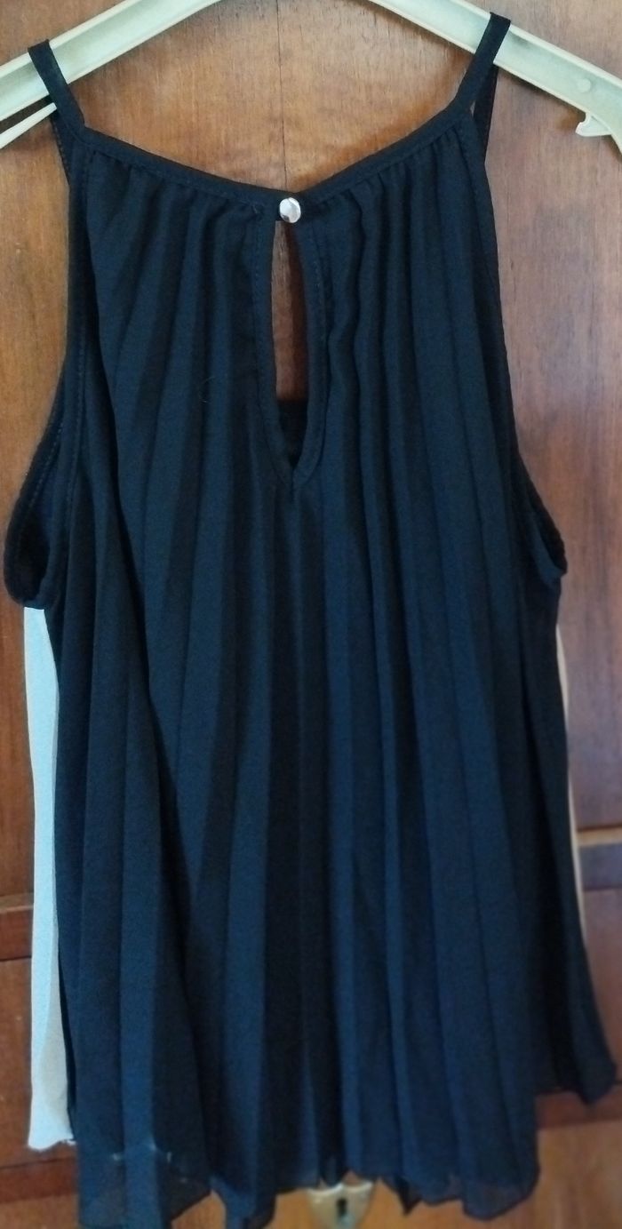 🖤 Haut - Débardeur - Blouse 🖤 Caractéristiques : Plissé, fluide 🖤 Couleur : noir et marron 🖤 Doublure : noire 🖤 Composition : 95 % polyester et 5 % élastique 🖤 Taille : 40 / L 🖤 État : ** Jamais porté ** ** comme neuf ** 🖤 Marque : Mimosa