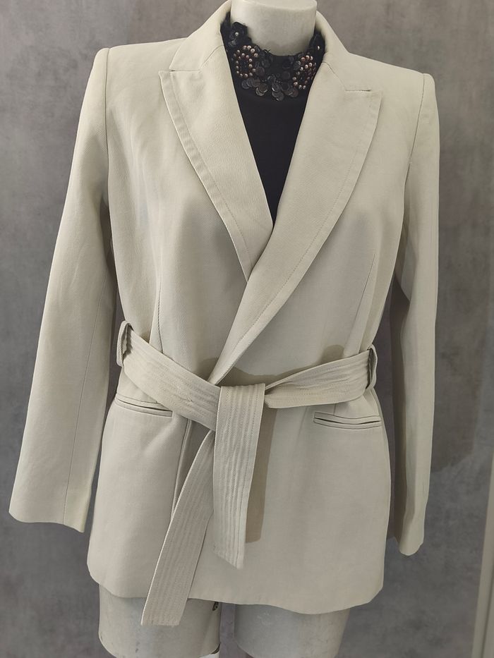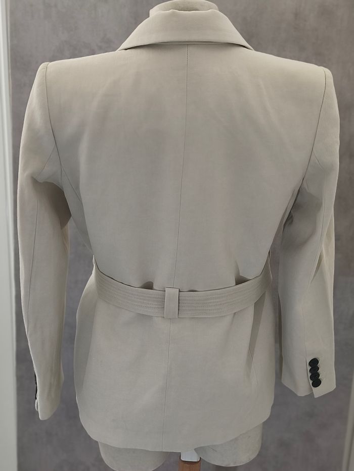 Très belle veste neuve ba&sh Couleur beige État neuve Col style blazer cintré a la taille avec ceinture,une veste chic et décontractée peut ce porté au bureau comme au restaurant pour tout Tip d'occasion elle reste élégante. Produit envoyé rapidement 24h 48h ce font tous les jours en fin de journée.