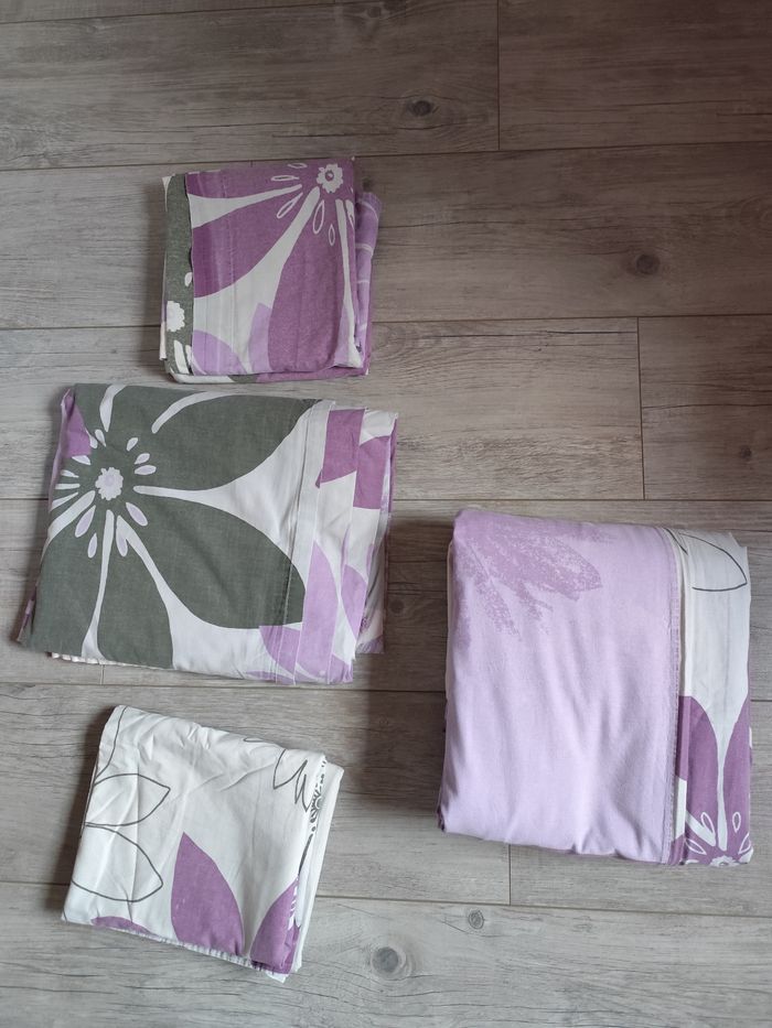 Vend cette housse de couette réversible 240x220 4 taies dont 2 taies 63x63 et 2 taies 50x70 1 drap(un peu abîmé ds le bas) Remise en main propre ou frais de port a charge de l'acheteur