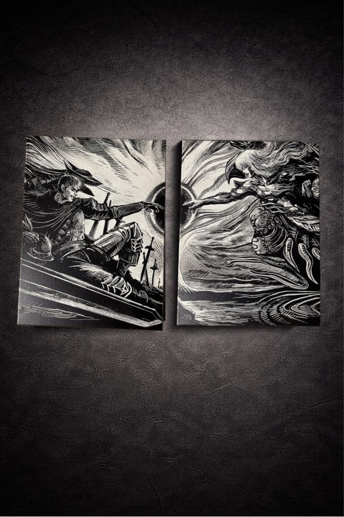 Lot de 2 tableaux Berserk épique noir et blanc – toiles manga 30x40 cm déco murale dark fantasy - photo numéro 2