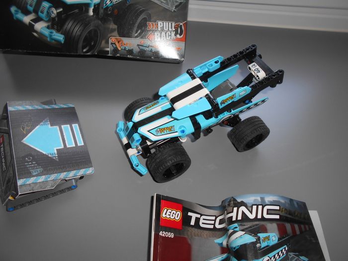 Vends ce Lego Technic n°42059: Le pick-up du cascadeur, complet, avec notice et boite abimée.