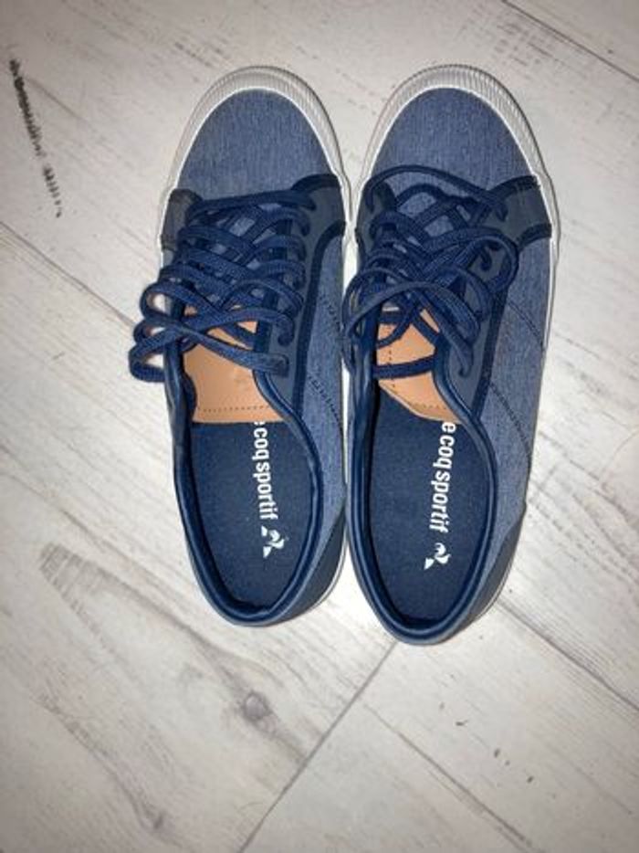 Paire de chaussures le coq sportif taille 39 en bon état. Quelques traces sur la bande blanche sur les côtés.