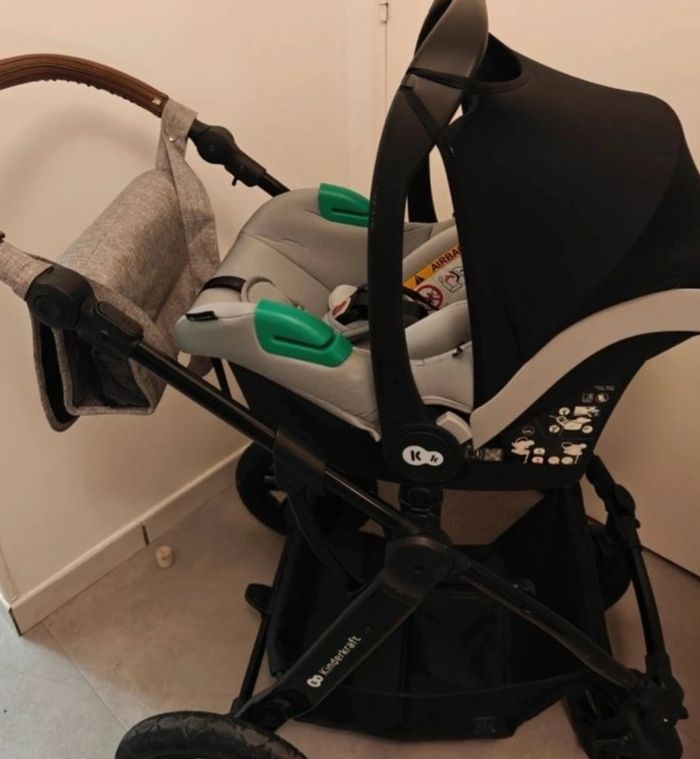 Poussette trio utilisable dès la naissance Vendu avec cosy nacelle habillage pluie .. dans son carton dorigine. Facture d'achat 289 euros !