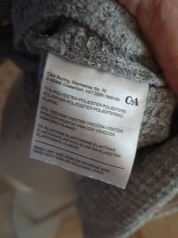 Joli pull gris texturé C&A femme TL / 40 détail nœud état impeccable ​ ​Sublime haut à manches longues de la marque C&A, coloris gris chiné, parfait pour un look décontracté mais travaillé. • ​Coupe : Fluide avec un joli décolleté en V. • ​Détail mode : Un nœud décoratif sur le bas du vêtement qui apporte une touche originale et féminine. • ​🧵 Matière : Maille texturée façon "gaufrier" (waffle knit), très douce et extensible grâce à sa composition (71% Polyester, 27% Viscose, 2% Élasthanne). • ​✅️ État : Très bon état, peu porté. • ​📏 Taille : L (convient à un 40/42). ​✨ LES PLUS : • ​Maison non-fumeur. • ​🧼 Vêtement lavé et soigné. • ​📬 Envoi rapide et protégé. ​📦 N'hésitez pas à faire un lot pour réduire les frais de port et bénéficier de réductions automatiques ! #ribeirozazafemme40 #femme40 #40femme #mode #pull40 #pullfemme #pullfemme40 #40pull ​#C&A #hautfemme #grischine #tailleL #vneck #casualchic #topgris #Femme40 #lookautomne #ribeirozazafemme40