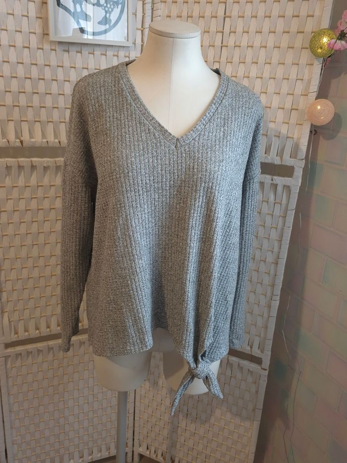 Joli pull gris texturé C&A femme TL / 40  détail nœud état impeccable - photo numéro 1