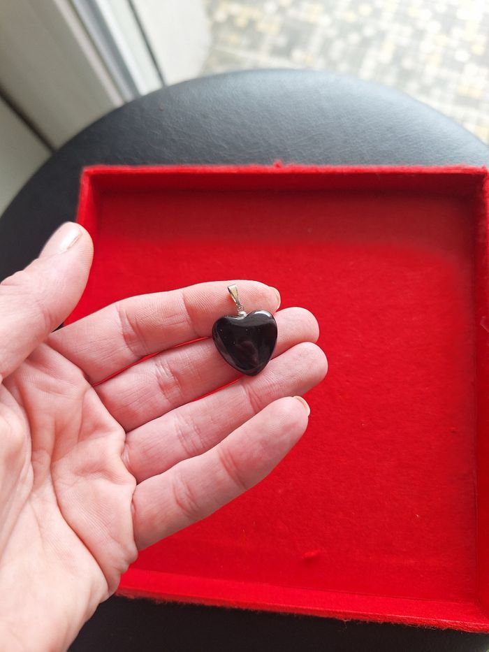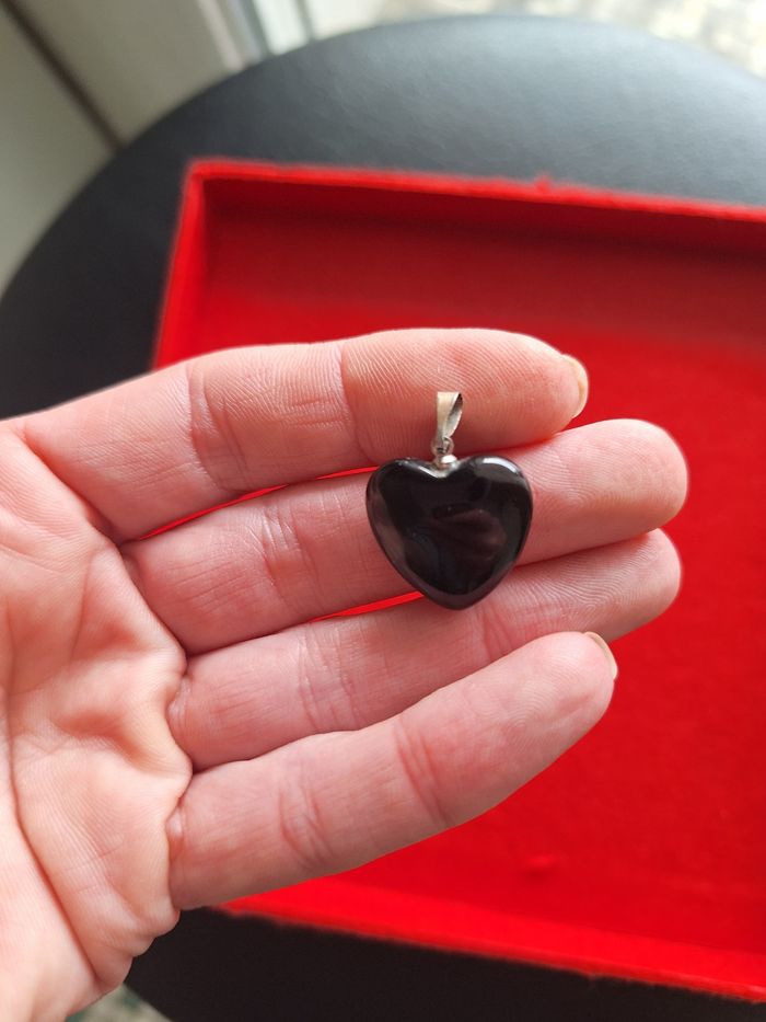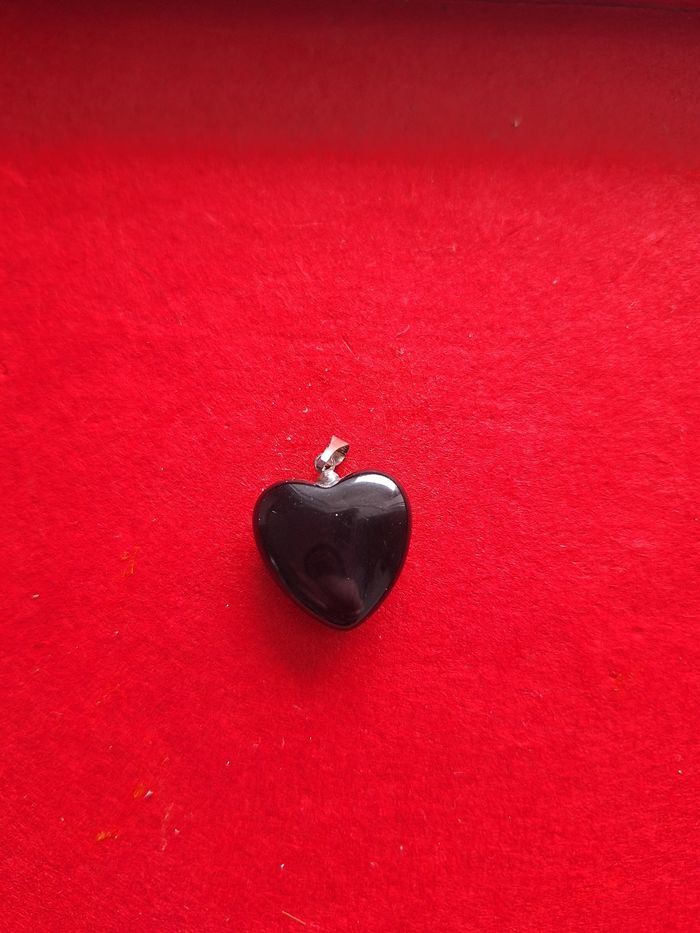 Pendentif en forme de cœur en pierre roulée d'obsidienne