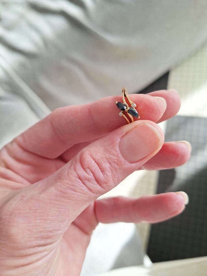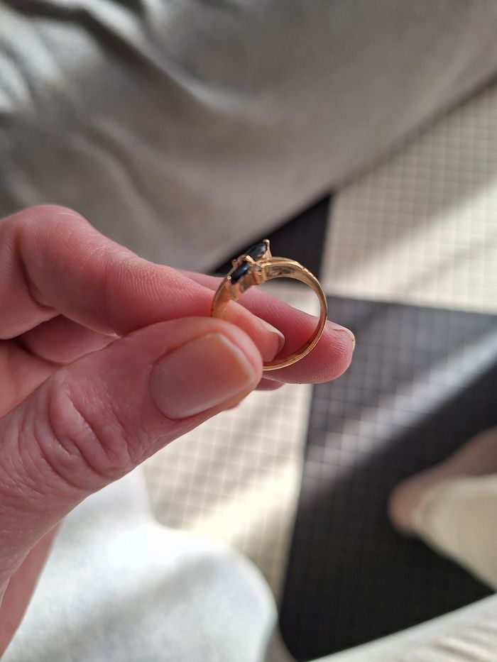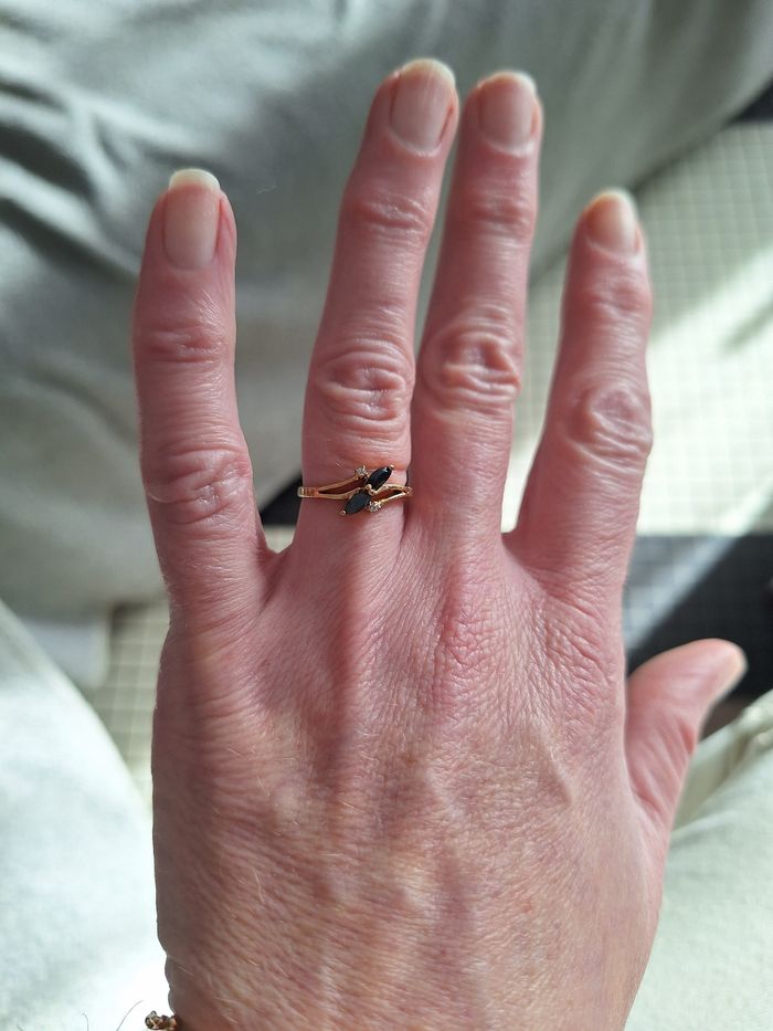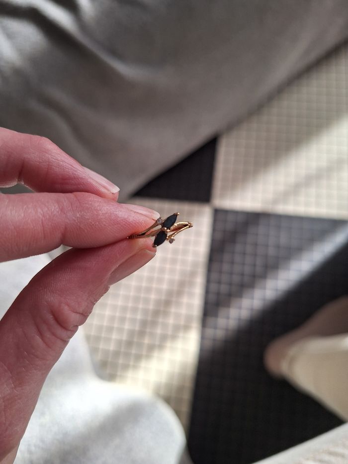 Bague plaqué or et pierres noires - photo numéro 1
