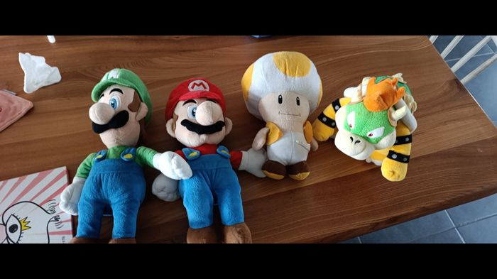 Officielles Nintendo. Lot de 4 peluches. Manque étiquette sur luigi. Bon état.