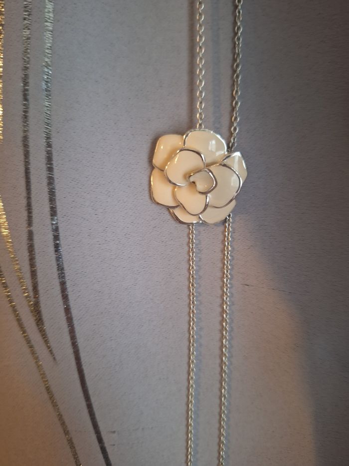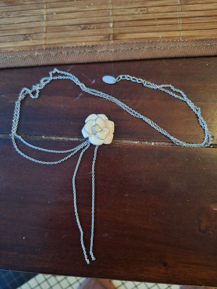 Collier sautoir en acier avec fleur en email blanc de la marque azzaro