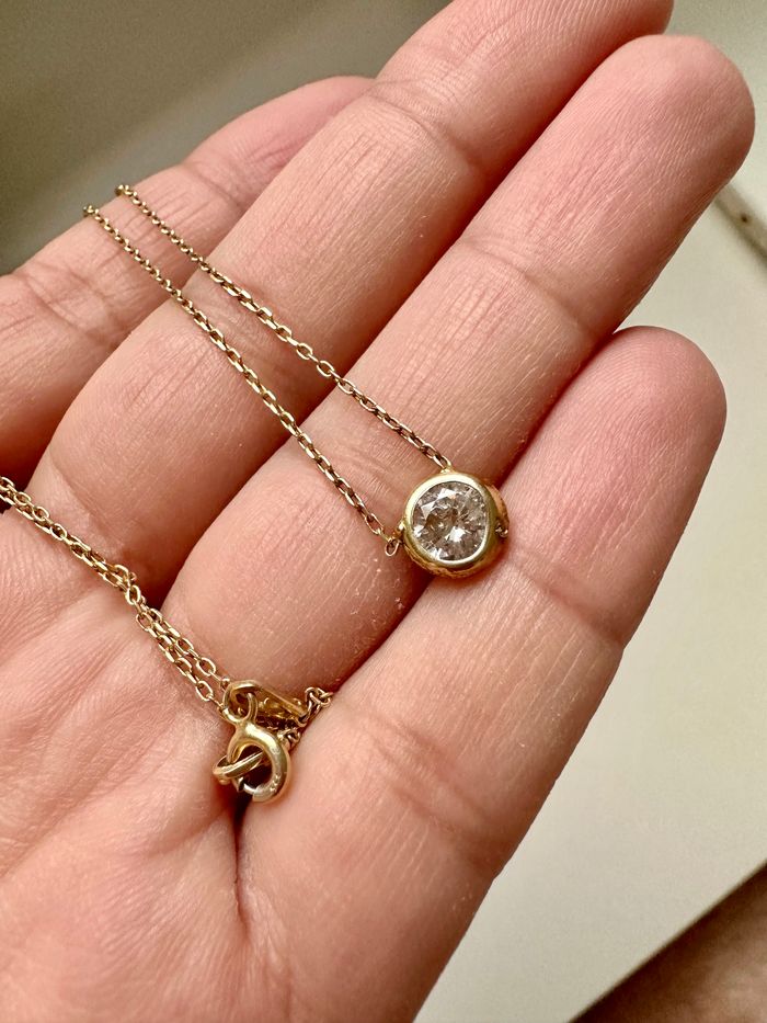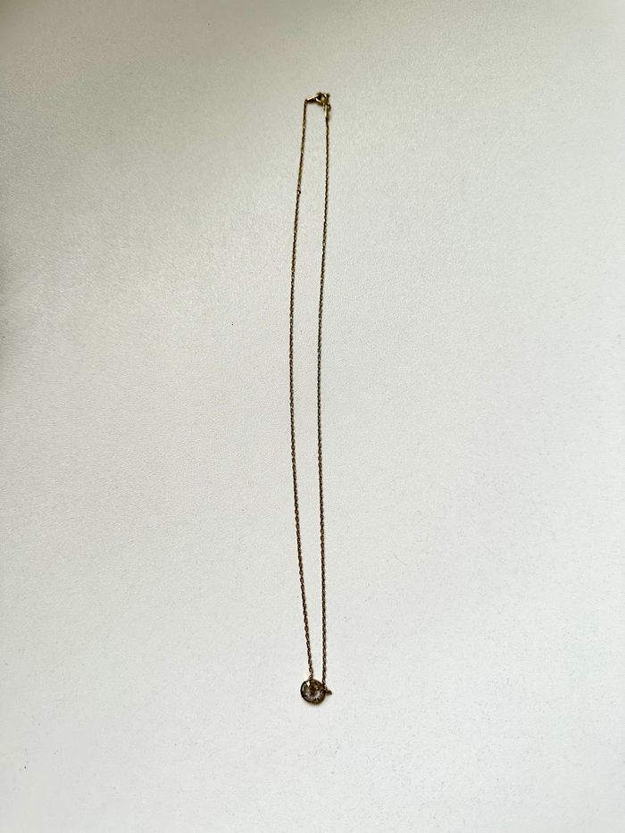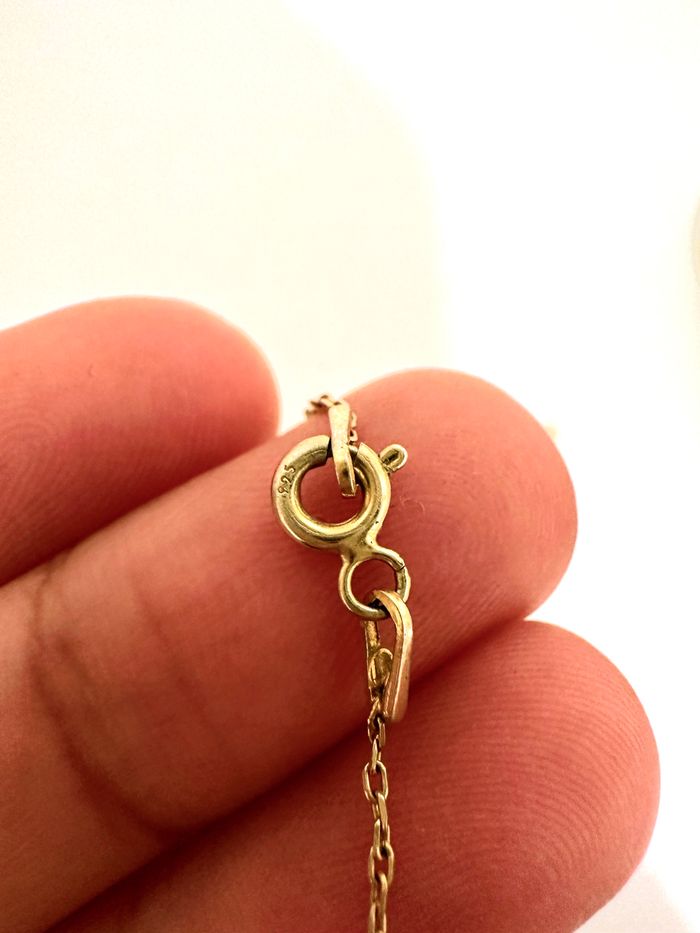 Collier en argent plaqué en or jaune Ornée de pierre blanc oxyde de zirconium Acheter chez Marc orian, très peu porté encore en excellente état. Le poinçon est gravé sur le fermoir.
