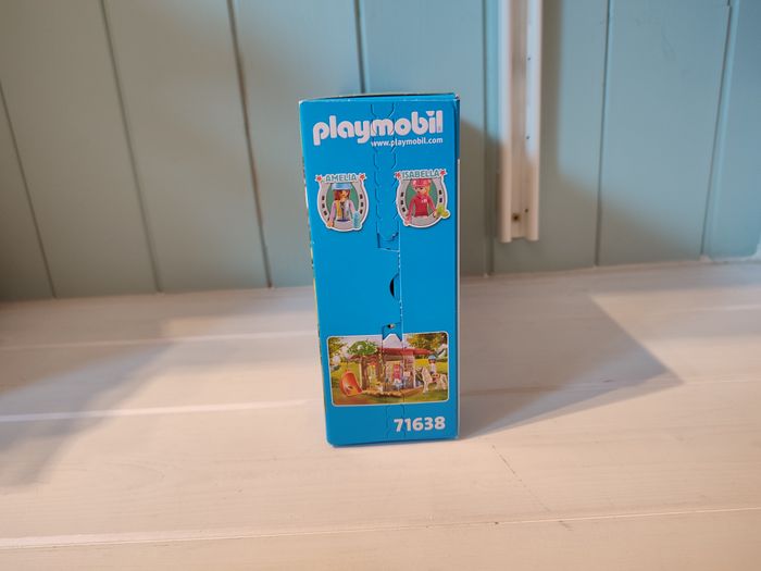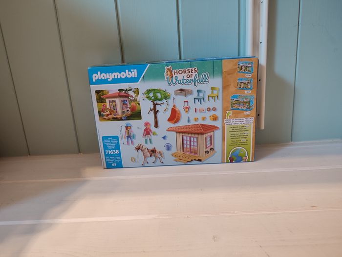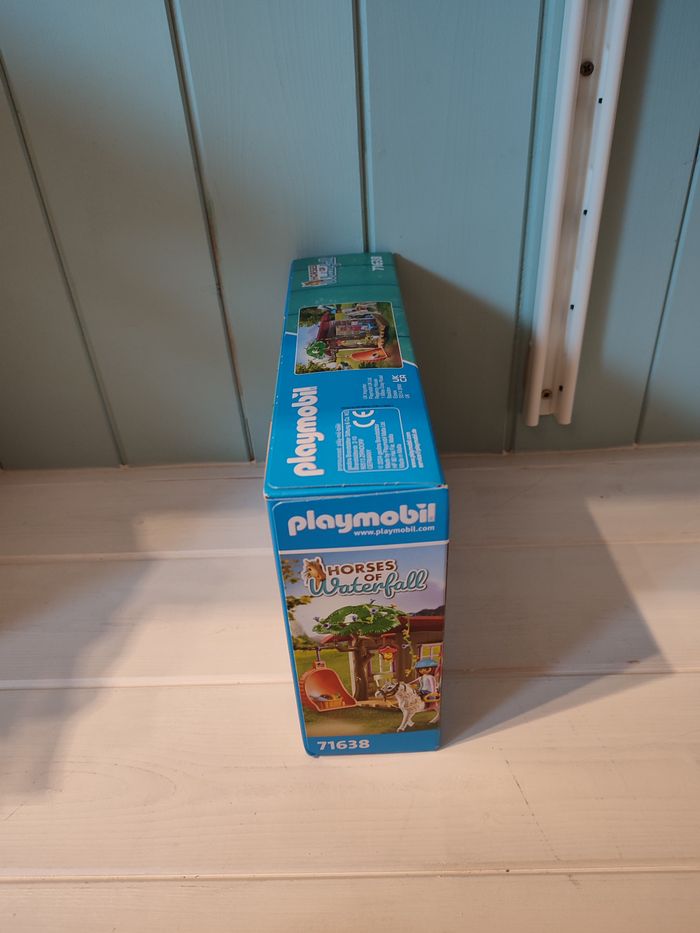 71638 Playmobil horses of waterfall Boite d'origine scellée Ce set comprend 2 personnages femmes, ,1 cheval, 2 chaises, 1 table, 1 chaise à bascule, 1 lettre, 2 bagues, 1 bracelet, 1 nœud de cheveux et 2 casques d'équitation.