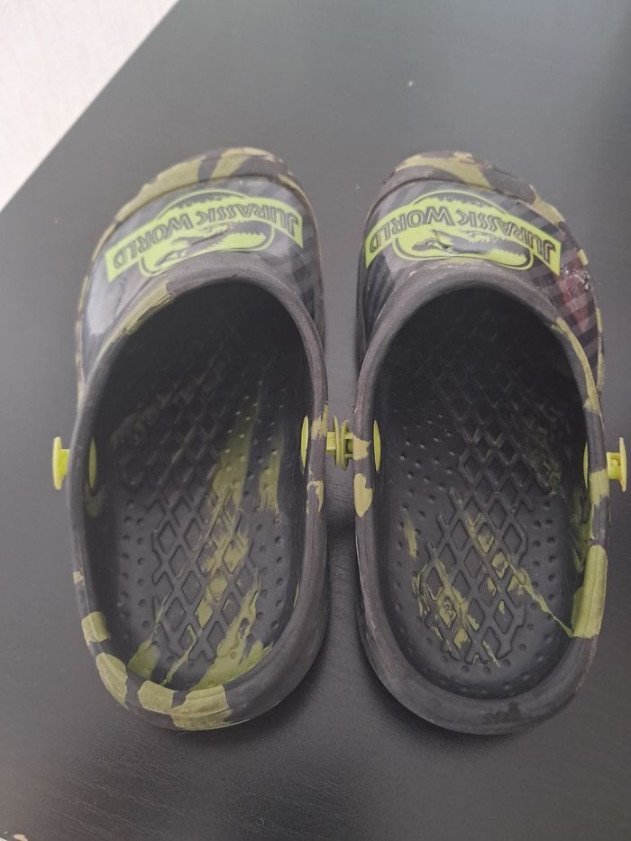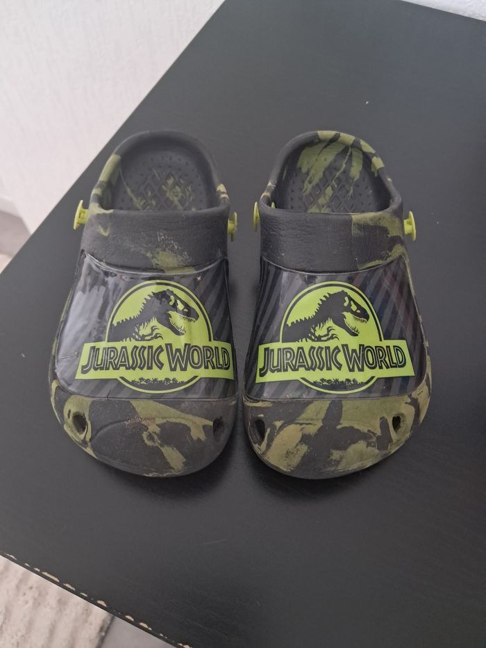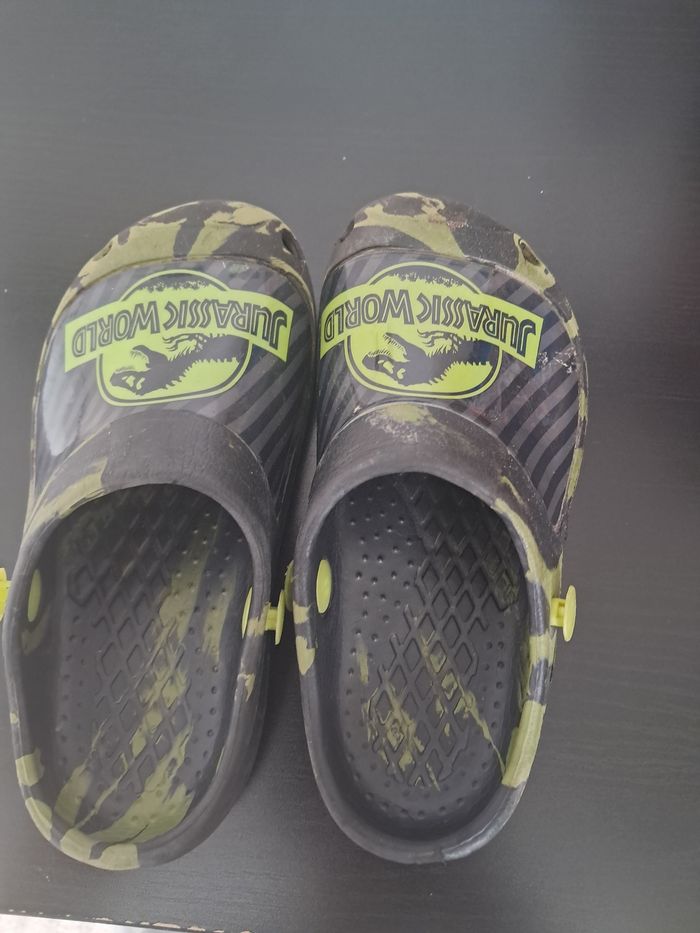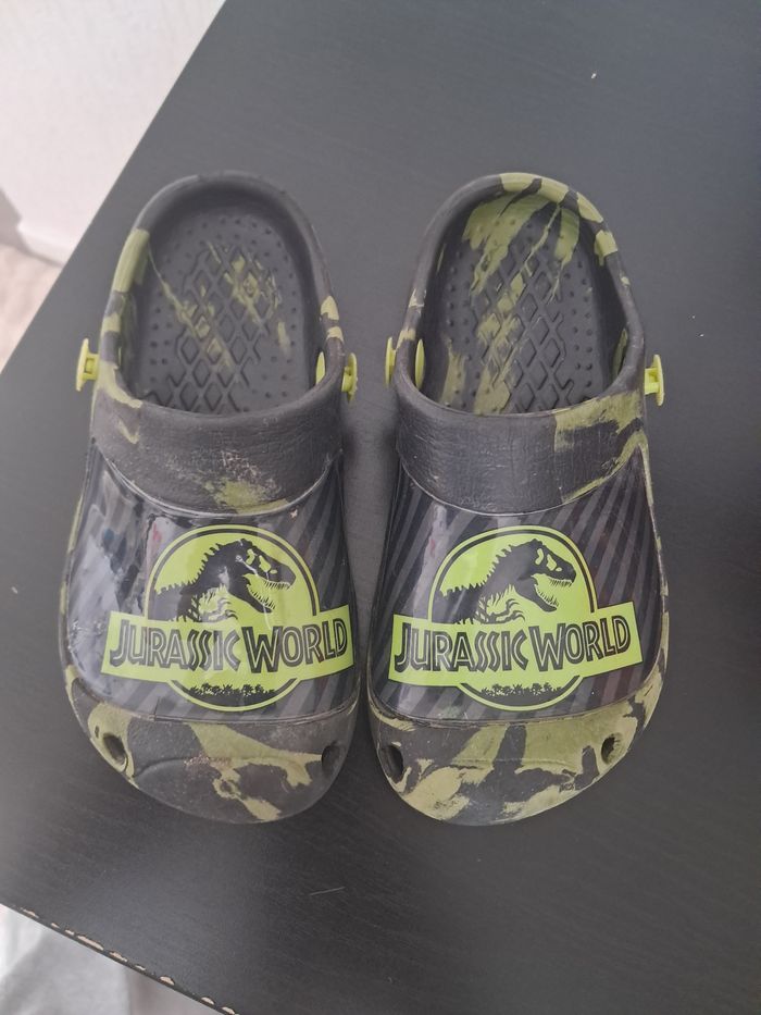 Sabots enfants Jurassic world Pointure 30 En très bon état juste manque les lanières a l'arrière nous les avons retirer voir photos