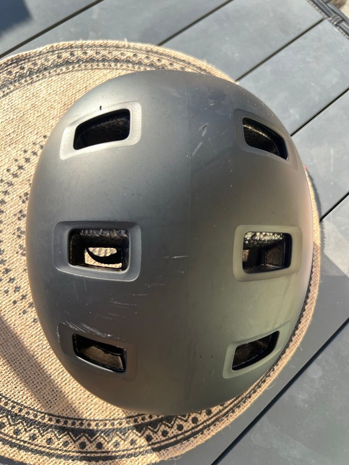 Casque de vélo BTWIN en noir, avec quelques légères rayures visibles. Taille 1/2 ⭐️ État : 7/10 (Rayures légères) 🎨 Couleur : Noir 📦 Livraison rapide et soignée