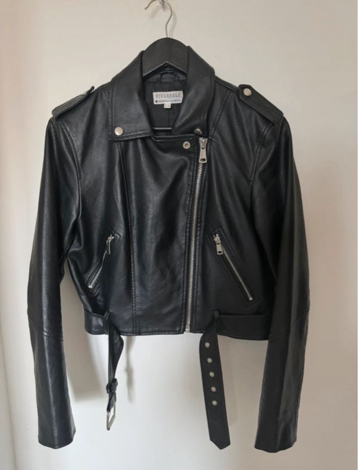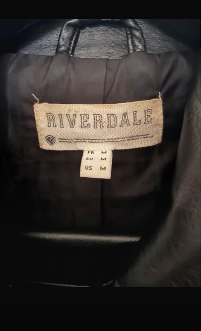 Veste noire style biker avec grand patch brodé South Side Serpents dans le dos. Coupe courte, esprit rock/moto, avec ceinture et détails soignés. Look affirmé et pièce originale, idéale pour les amateurs de style rebelle ou de culture pop. Aucun défaut.
