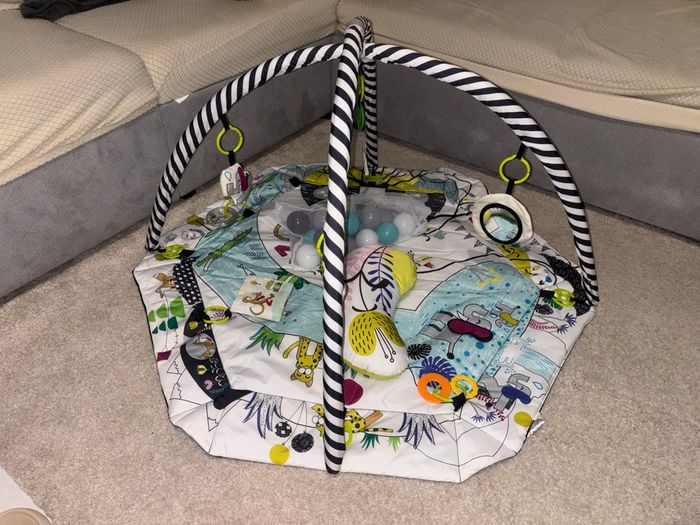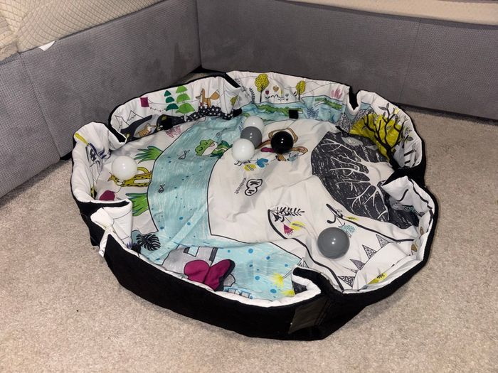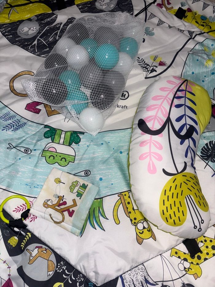 Tapis d’éveil avec arche à jeux, balles et coussin